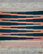 Using the inherent grid and lines of the weaving process, the beach in her work is often depicted as waves of valleys and shallow pools, beautifully reflecting the light and the sea as the water recedes and returns.