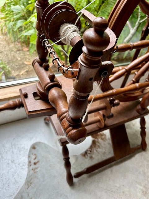 This wheel was made by James and Anne Williamson in Thurmaston, Leicestershire.