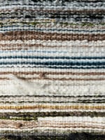 The wool and linen have been hand-spun, a sustainable approach that aligns with her use of locally sourced and repurposed yarns.